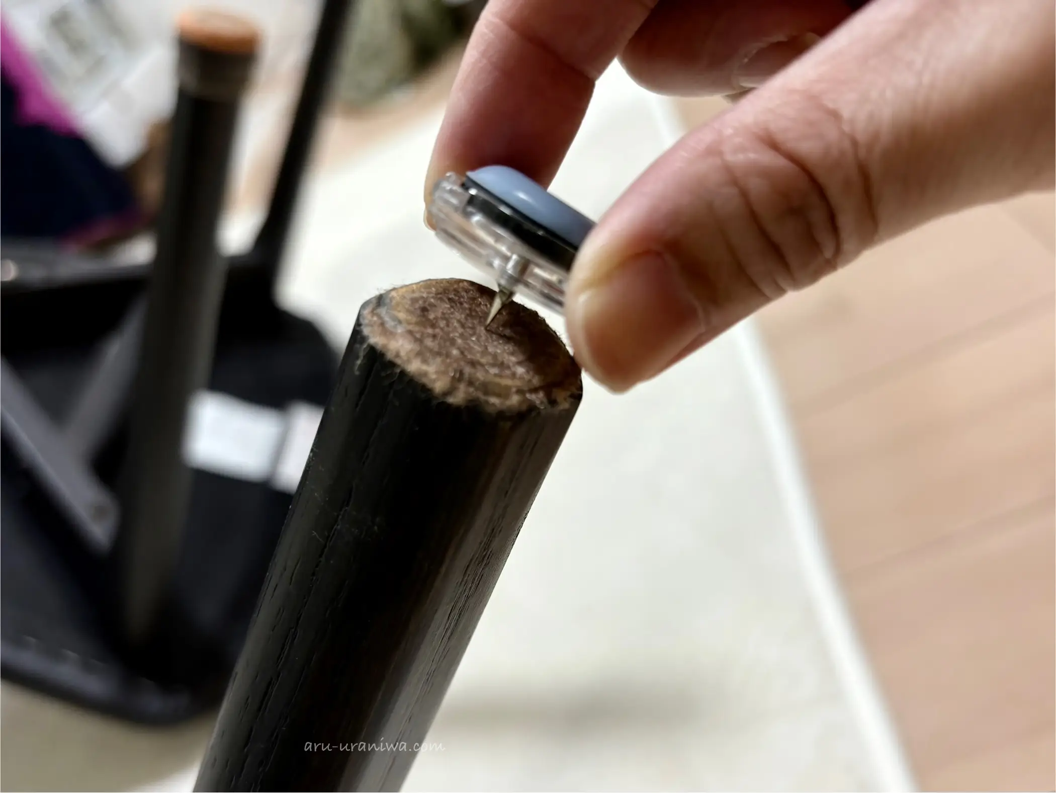 うちは丸形の脚なのでカバーのつまみが椅子を傾けた時に床と接触しやすいため、取り付ける向きに気をつけておけば良かったなと少し後悔💦